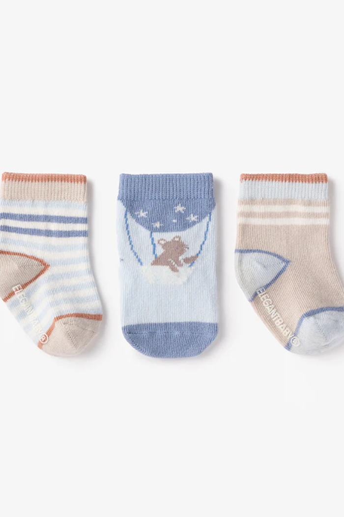 Made with the softest mix of cotton, nylon, polyester, and spandex, this baby sock set features modern designs with a useful no-slip feature. Designs are thoughtfully designed to lay flat across the front of foot for visibility while baby is laying down (yes, we think of all the details). Complete your baby gift set with these adorable, newborn necessities.
