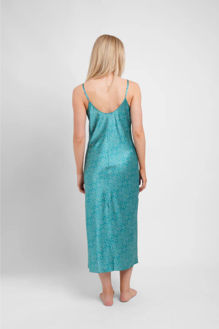 Luxury Silp Midi Slip / Teal Stars