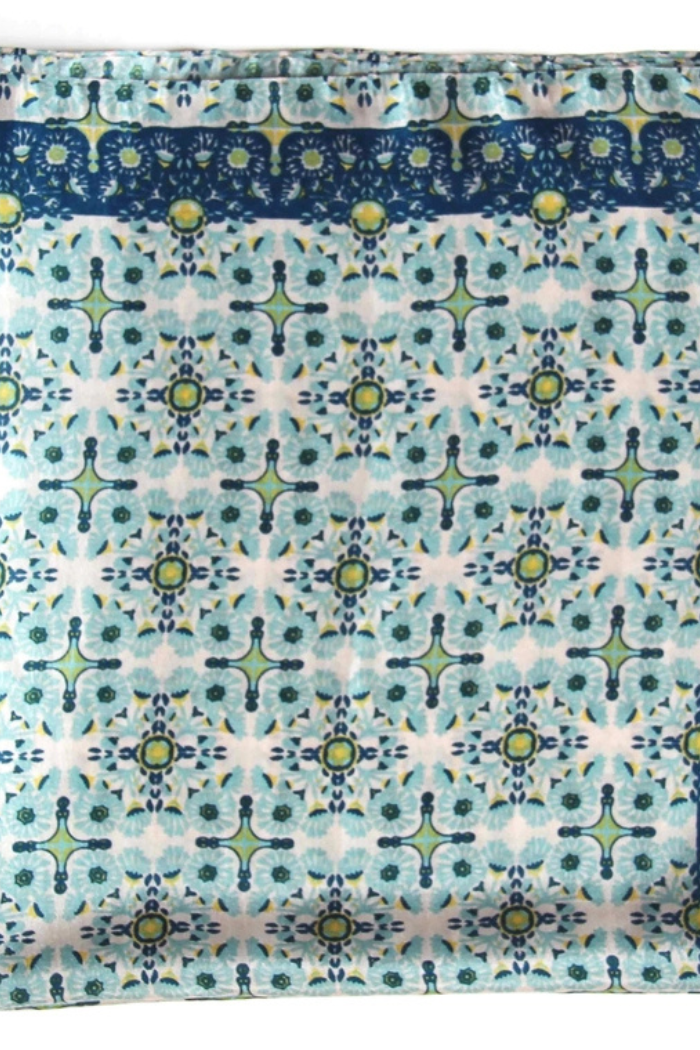 Mini scarves make for a unique and thoughtful gift, perfect for styling around the neck, wrist, as a headband, in a bun, or even attached to a bag. Each scarf is hand-drawn in France and hand-printed in India, featuring a fine finish with a hand-rolled hem.