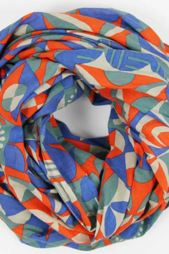 Our scarves, crafted from 100% organic cotton, can be worn as a scarf or a sarong at the beach. The cotton is of exceptional quality, offering a lightweight fabric with a soft, comfortable feel. The handmade printing creates rich, deep colors with a subtle finish.