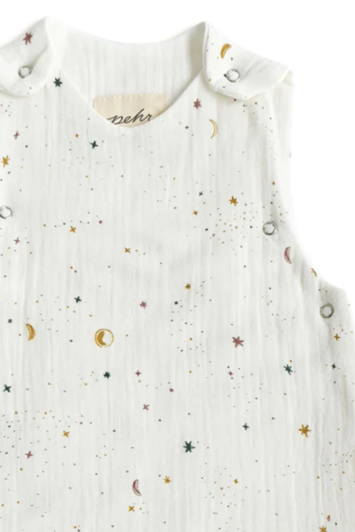 Made from 100% organic muslin cotton, our Sleep Bags are the perfect summer weight for a peaceful night's sleep. The Sleep Bag Thermal Overall Grade 1 TOG is for room tempatures of 75 - 81 °F , 24 - 27 °C. With 2 layers of muslin, it's both breathable and incredibly soft. It also unzips side to bottom with a zipper for easy diaper changes. Designed for little one's comfort and your piece of mind, we added under-arm snaps in our 0-9 month size to ensure a perfect fit for your growing baby.