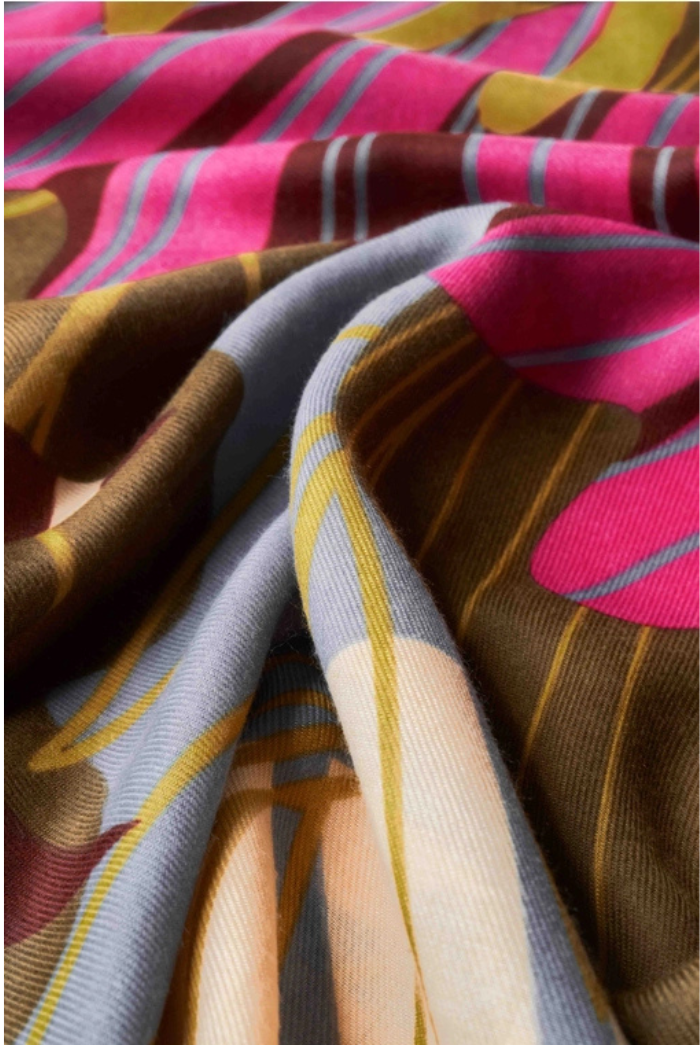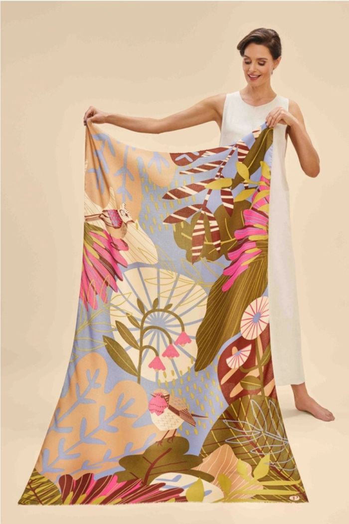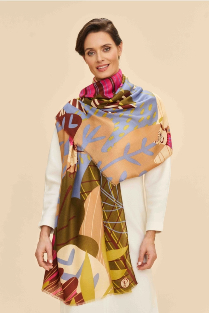 Distinctive and one-of-a-kind, our printed scarves are crafted in our Edinburgh studio, showcasing intricate, single-panel designs that transform the scarf into a stunning, oversized canvas! The Autumn Hedgerow design blends rich, earthy tones with a charming folk-inspired woodcut style. It also comes with complimentary gift packaging.