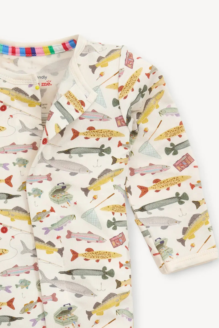 Magnetic closures: magnets run from the neck to upper thigh for sizes up to 0-3m and from neck to crotch for sizes 3-6m and above.