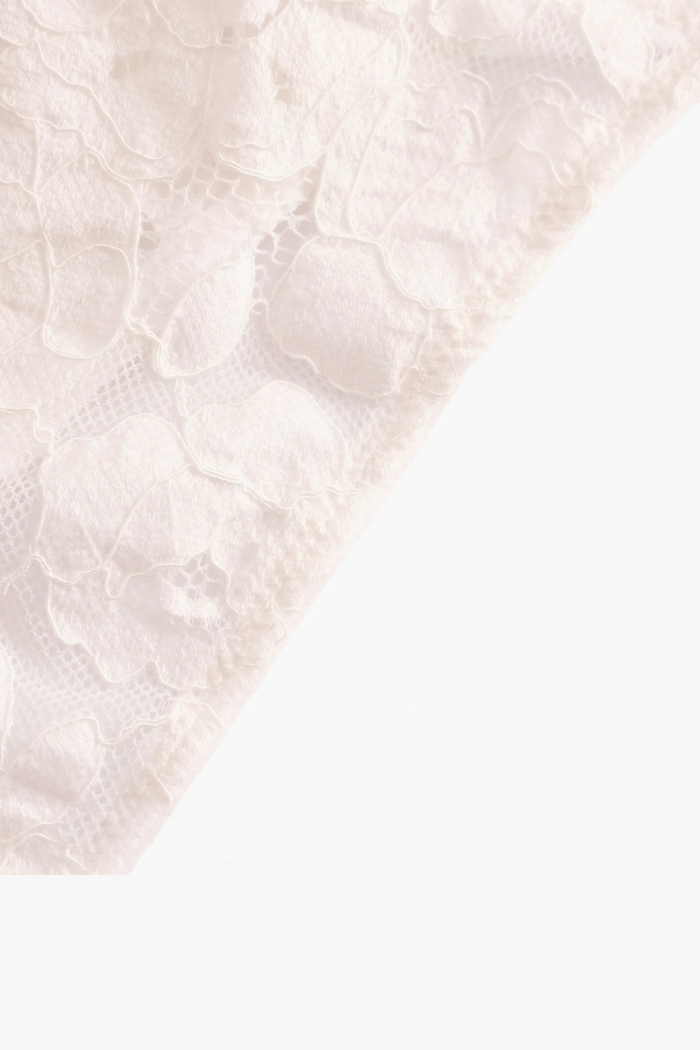 This G-string style piece is crafted from a Turkish cotton blend stretch lace with intricate cording, delivering a vintage-inspired aesthetic, breathable comfort, and a soft, luxurious feel. Designed with minimal rear coverage and a cotton-lined gusset for added ease and hygiene.
