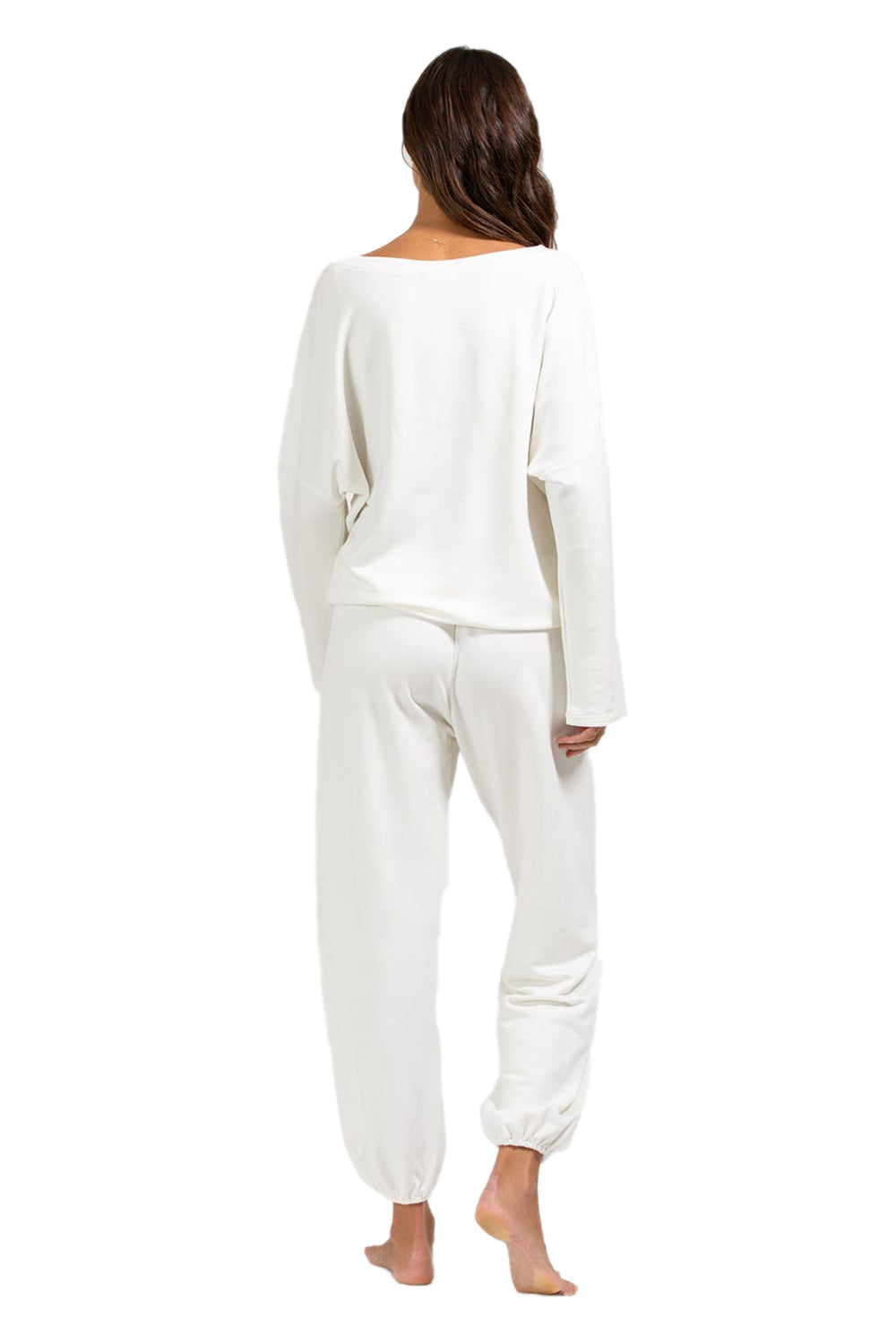 The modern sweatpant has an adjustable tie for a custom fit and makes a cozy cold weather set when topped with the matching top. You can also pair it with your favorite T-shirt and throw on some sneakers or sandals for a chic casual look at home or on the go.
