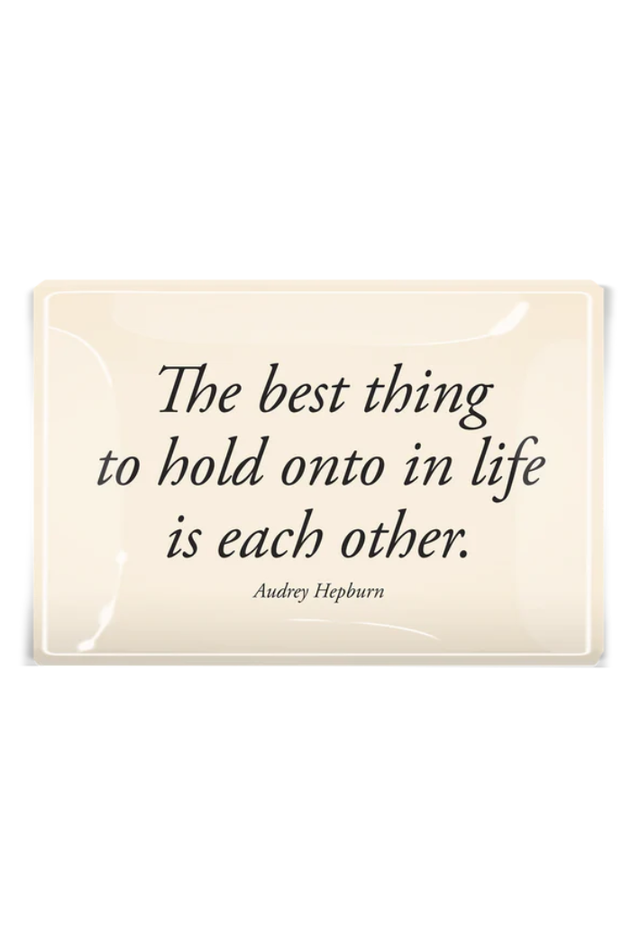 Handcrafted in our New York studio, these bent-glass trays are created in the French tradition of découpage. Featuring vintage typeset on a natural cream background, each piece is individually signed by Ben.