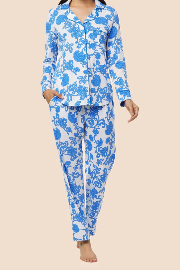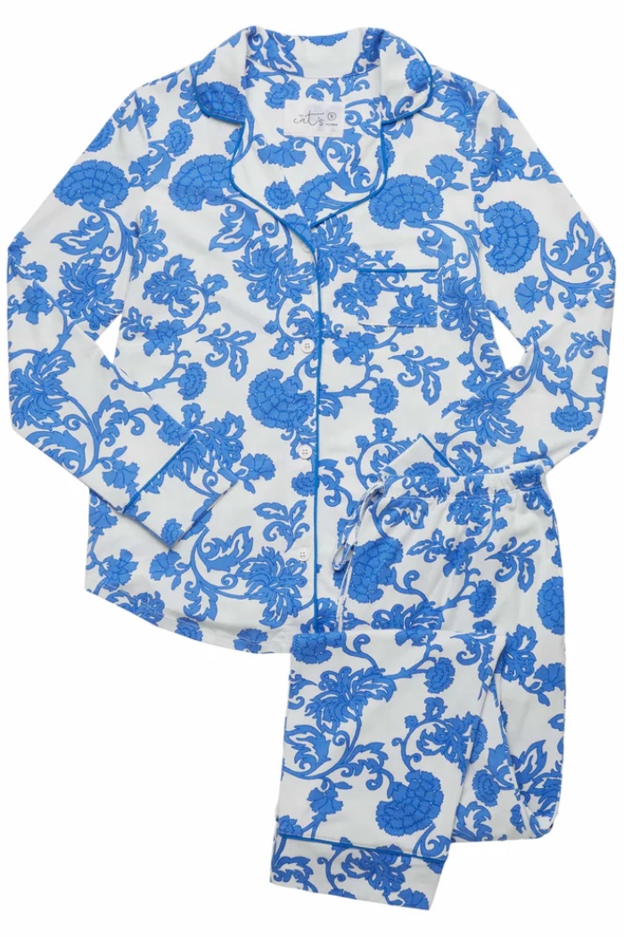 The Cat's Pajamas Chrysantheme Pima Knit Pajama - Blue